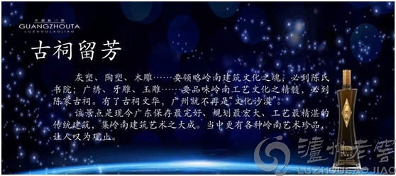 廣州塔羊城新八景酒,是瀘州老窖定制酒公司繼與中石油寶石窖酒業(yè)合作開發(fā)寶石窖系列定制酒后,又一次大膽的創(chuàng)新。經(jīng)過深入市場調(diào)研,結(jié)合嶺南豐富的旅游文化,融入中國白酒傳統(tǒng)優(yōu)勢和時尚需求,精心研制的一款城市名片酒、時尚文化飲品。對酒體口感上進行了深度創(chuàng)新,采用瀘州老窖傳統(tǒng)釀制技藝,并由瀘州老窖國家級釀酒大師精心調(diào)制的一款適合嶺南人民飲用的定制白酒,具有醇香濃郁、醇甜柔和、酒體協(xié)調(diào)、余味爽凈、風(fēng)格典型的特點。該酒還可加冰飲用,口感更佳,并可作為母酒和多種飲料調(diào)和飲用,符合白酒時尚化的發(fā)展。