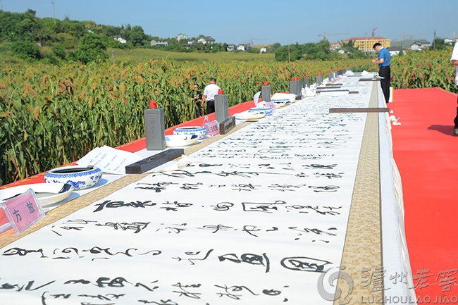 20余位書法家在瀘州老窖有機高粱地里共同完成《高粱紅了》賦書法長卷