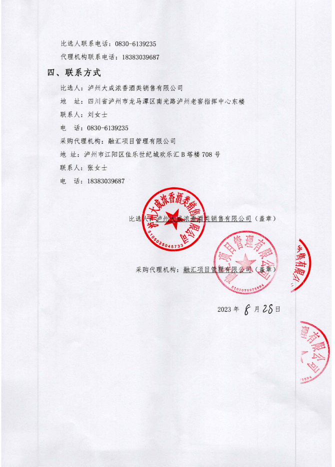 瀘州老窖重慶營(yíng)銷(xiāo)服務(wù)中心裝修裝飾工程(第二次)成交候選人公示